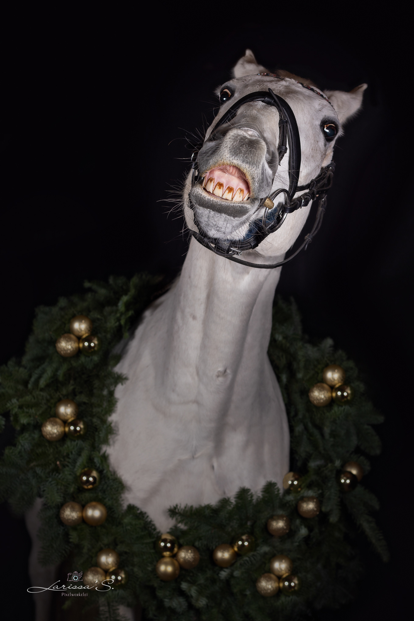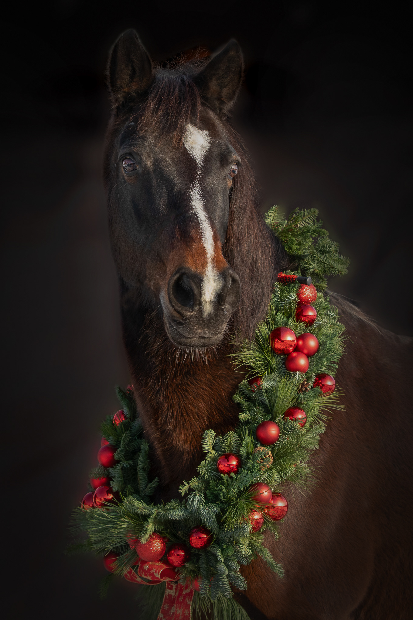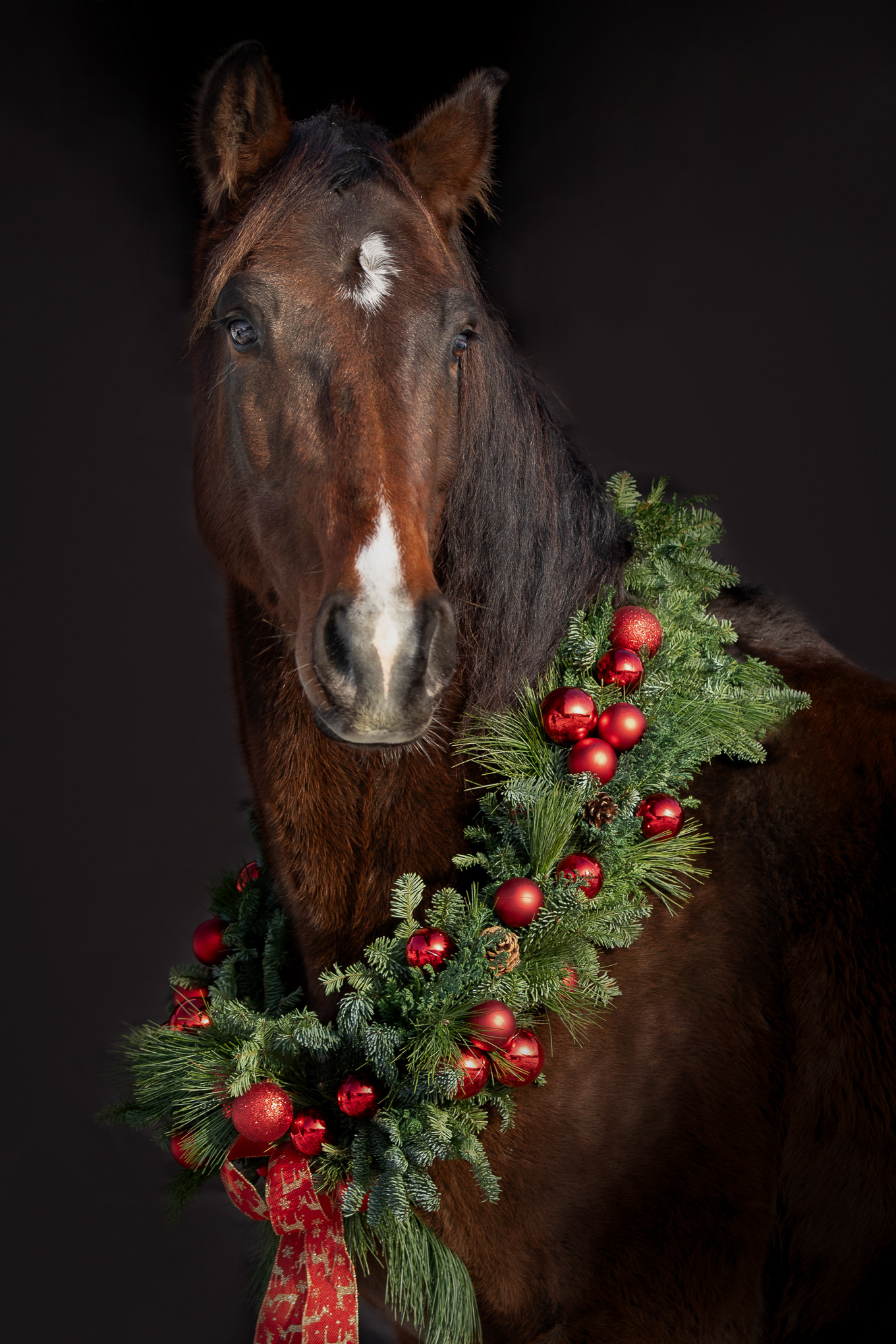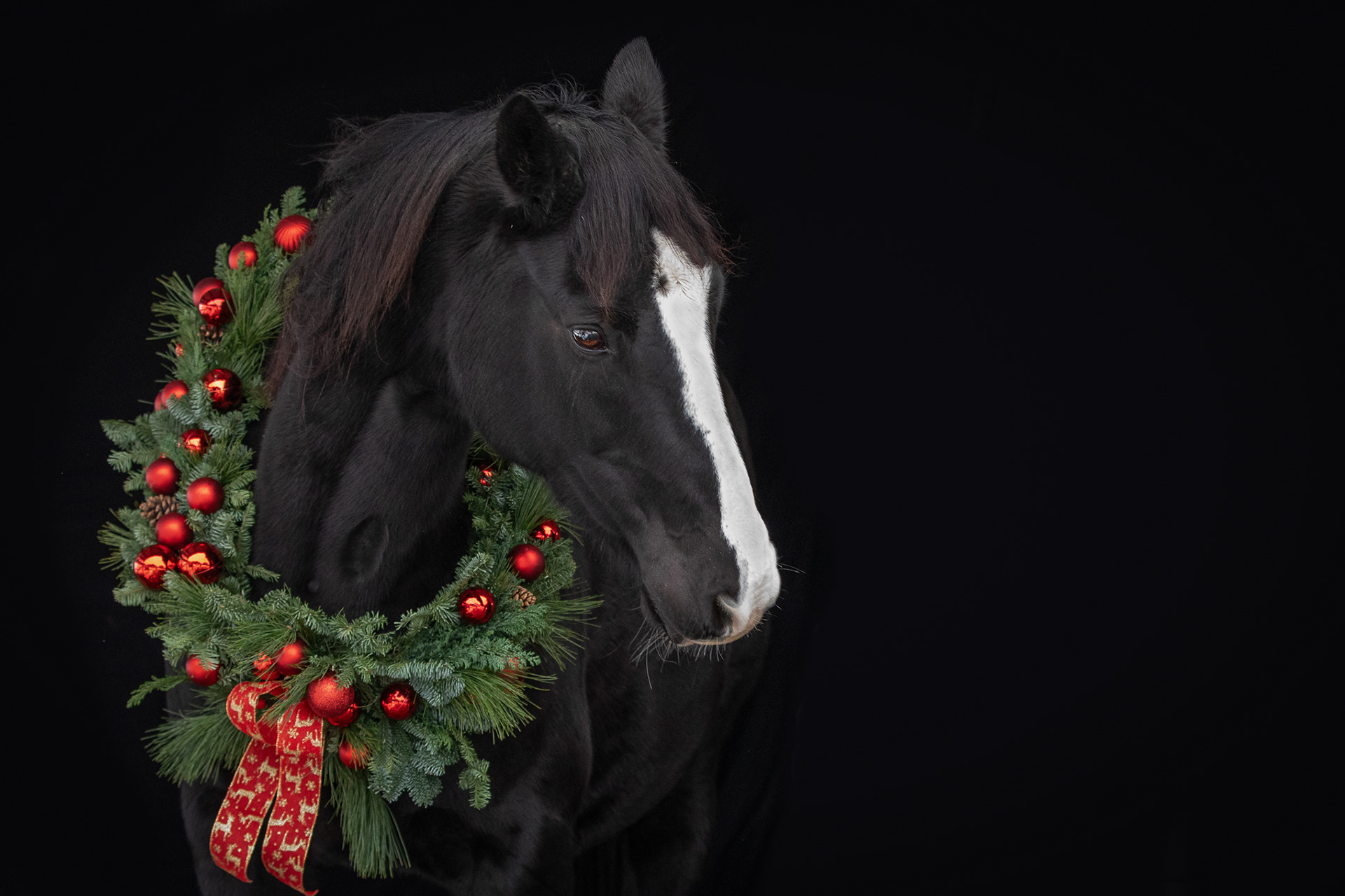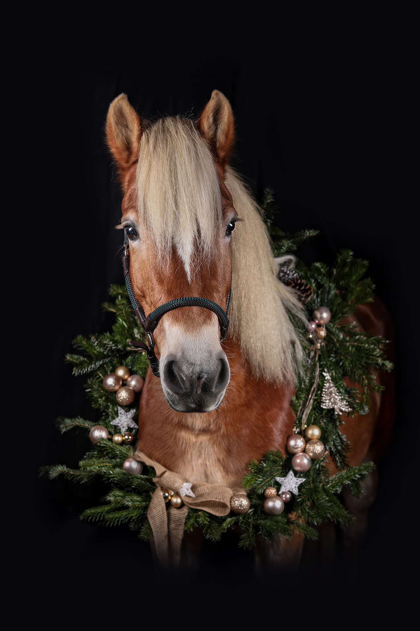 Pferde mit Weihnachtskranz